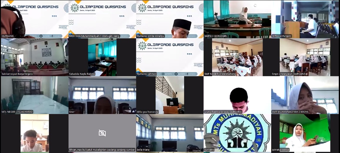 Pondok Pesantren Muhammadiyah (PPM) Qur’an dan Sains (QURSAINS) SMA Muhammadiyah 1 Wonogiri menggelar olimpiade Qur’an-Sains Nasional pada Senin (14/04/2025), diikuti oleh siswa/siswi tingkat SMP/Mts se-Indonesia secara daring menggunakan sistem CBT.